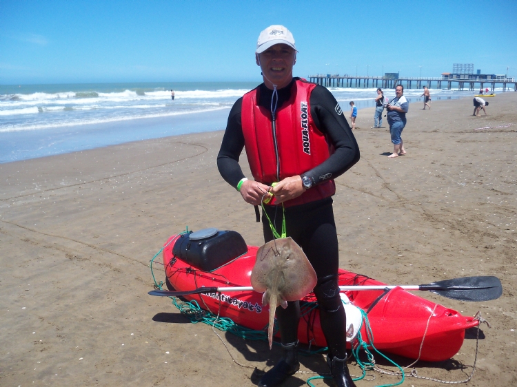 Disfrutamos de la previa, preguntamos porque las fotos de la raya y el chucho y nos dijeron que estaban exluidos del concurso, salimos al agua y empezaron los problemas, un revolconcito en el entrada, lo solucionamos y seguimos el kayak iba muy hundido de atras (si alguno nos vio opine) seguramente es un error que yo mas pesado vaya atras, eso creo nos genera que no vayamos muy estables pero igual no nos caimos, anclamos serca nos pusimos a pescar no pasaba nada, pero yo muy mojado, de la mitad del kayak para atras todo con agua empesamos a tener algo de frio, levantamos ancla fuimos mas adentro ( serquita del que saco el melgacho, felicitaciones !!!!!) seguimos con frio y encima empezamos a derivar, aqui les hago la primer consulta, es poca ancla para dos gordos y el triplo o el problema es otro?