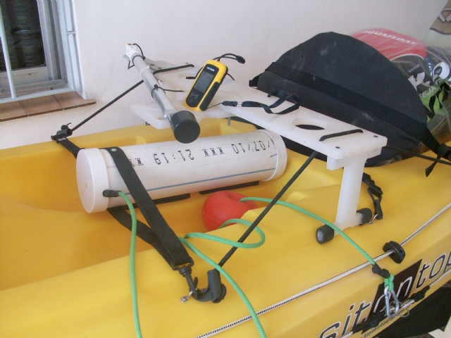Amigos lo prometido, fotos detalle del tablero del WAIMEA, y del porta fondeo. Esta realizado a mano, mecanizado muy artesanal, el agarre se puede adaptar con tornillos en aquellos kay con reposapies; en las guías. Las aberturas tienen infinidad de usos, desde posacañas, soporte de bogagrips, señuelos, botellas de agua, etc. El soporte de la eco se los debo, tengo que comprar uno de GPS y atornillarlo. El caño que tiene el sonar de la eco es de un inflador de bici en aluminio. Cualquier consulta o duda estoy a disposicion.