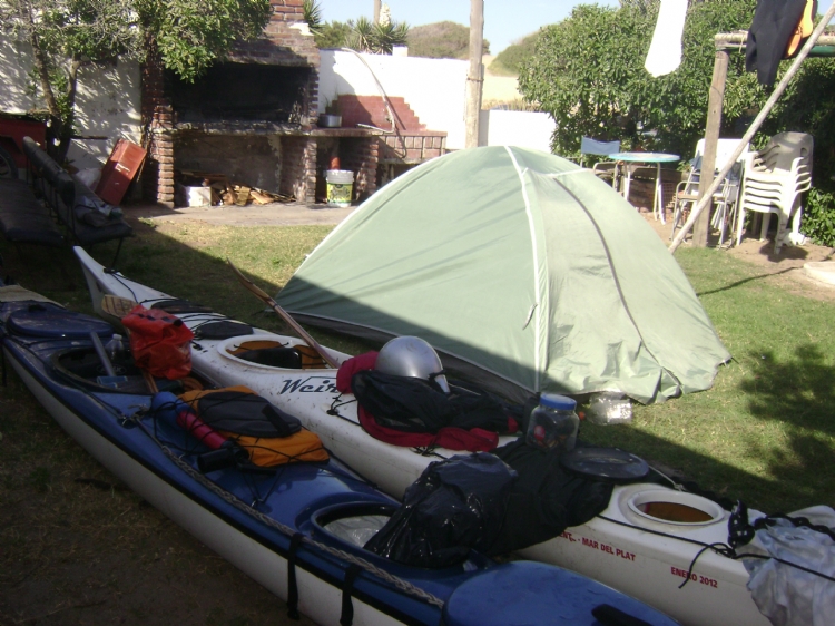 Gracias a Viticozyconseguimos un lugar para guardar los kayaks en San Clemente, Ángel salió con el auto y luegodejo los kayaks para luego seguir a Santa Clara y dejar el auto, unos días luego se acercó a San Clemente en micro, yo llegue el martes 3 a la madrugada, fuimos a remar por la bahía con Luis y su amigo Javier. El miércoles fui a Prefectura Lavalle para hacer los trámites correspondientes, estuve como 5 horas pero verán mas adelante que valió la pena, finalizó el día con prefectura llevándome en su camioneta a San Clemente para fotografiar los kayaks. Prefectura nos pidió un contacto en tierra a quien informar todos nuestros movimientos y establecimos a Javier Latitud 1860 quien nos ayudó todo el viaje, luego nos ofreció los destacamentos de la costa para parar en caso de necesitarlo, armar una carpa, cargar agua y recargar los teléfonos, no esperábamos tanto, que nos autoricen ya estábamos contentos.