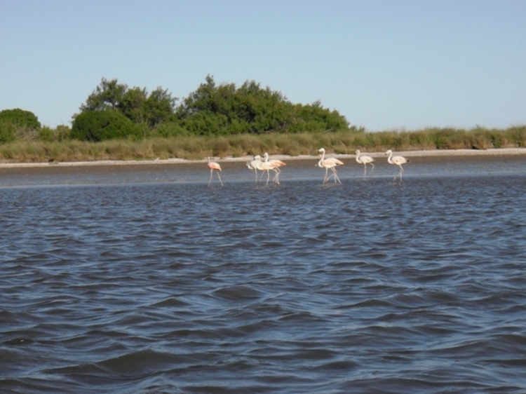 Botes al agua y salimos. La idea era recorrer los 24 km. que nos separaban de Mar Chiquita de un solo tirón así que pusimos unos turrones y unas frutas bien a mano como para comer algo en las pequeñas paradas de hidratación.