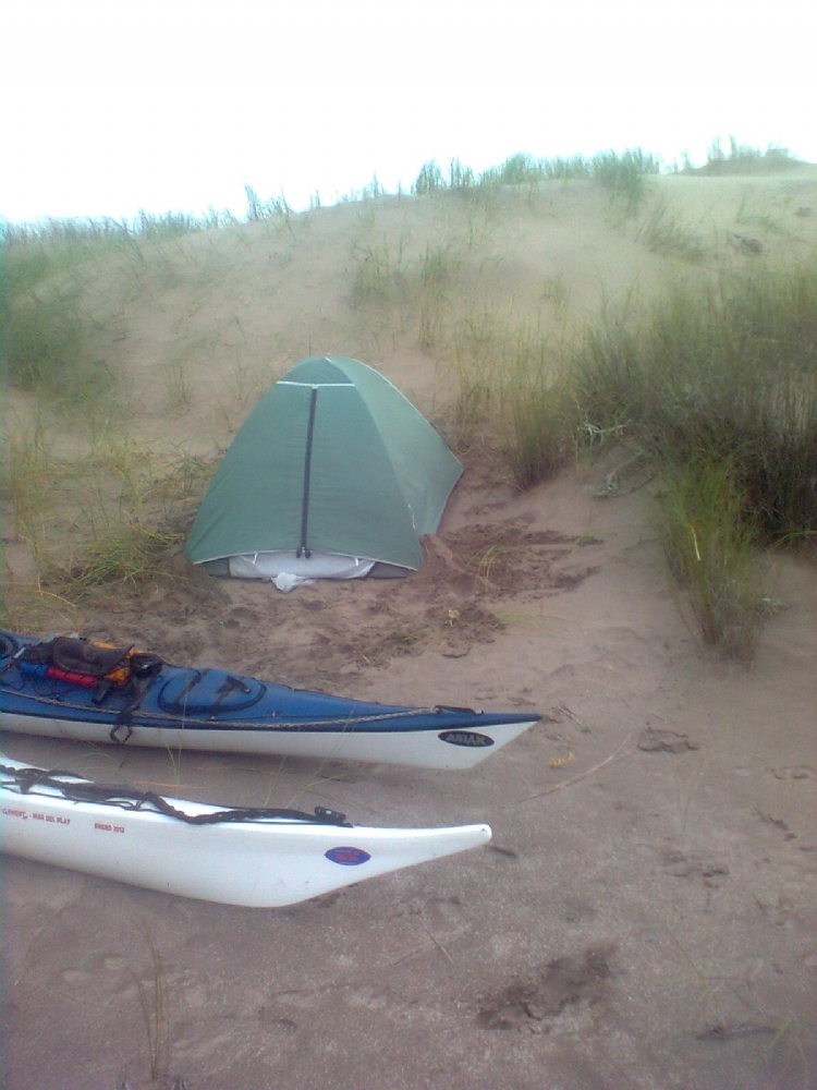 Conclusiones del primer día, los días de sudestada en el rio y las jornadas de práctica de técnica nos habían dado muy buenas armas para manejarnos en el mar, las tres entradas y las tres salidas fueron impecables. En lo que fallamos fue en querer seguir el programa con las paradas al pie de la letra, en este tipo de travesías si el clima te está dando una mano, hay que remar todo lo que el mar y el cuerpo te permita y salir donde se pueda. A partir de acá cambiaríamos la forma de navegar.