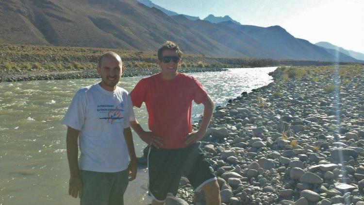 Decidimos ir por el camino de montaña que prometía hermosos paisajes. Lo que no tuvimos en cuenta era que los últimos 60 km. eran de ripio muy pedregoso, que nos hacia ir a 20 km/h y ya se hacia tarde así que pegamos la vuelta a mitad de camino. Una lastima…eso si… no me iba a quedar sin tocar el agua de deshielo. Metí la mano y los dedos se me entumecieron. Tome un trago, junte unas piedras, unas fotos y al camping. Día a día el camping desolado al que llegamos se iba llenando de gente con la que compartiríamos muchos buenos momentos.