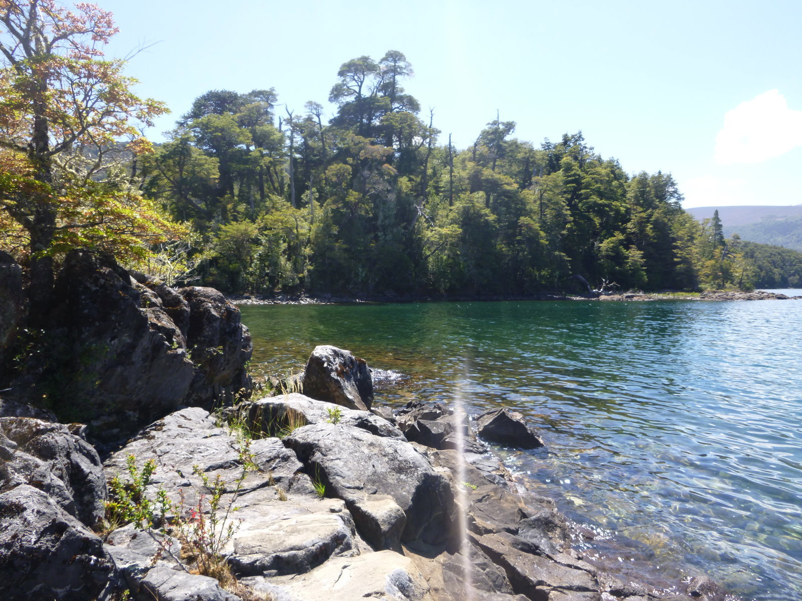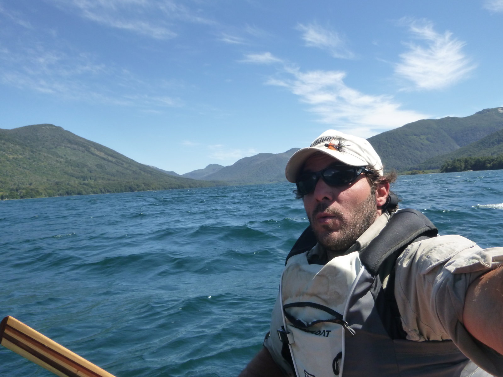 dia siguiente en Paimun ya relajado... kayak hasta la boca del Rio Paimun, 0 viento el lago un espejo ..pude hacerlo en linea recta por el medio del lago.. unos 6km..
