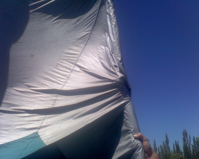 BUENO FUE ASI, CON EL ANTE CARPA Y DOS RAMAS QUE BUSCAMOS EN UNA ISLA HICIMOS ESTA ESPECIE DE VELA VICKINGA JEEJEJ, QUE CON EL VIENTO DE POPA Y POR ALGUNAS ZONAS DE ALETA NOS HIZO AHORRARNOS FACIL 10 KM DE REMADA, NOS DEJO A 3 KM DE PATAGONES PORQUE EL VIENTO ESTABA MUY BORNEADO Y DECIDIMOS YA AHI BAJARLA.