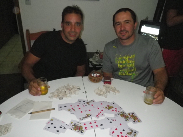 dormimos y decidimos al levantarnos tarde ir para marchi que yo no conocia a intentar algun lenguado, al llegar el viento te sacaba de paseo (extrañe la tabla de windsurf) asi qeu cruzamos y se armo partido de paleta limada, al mediodia pegamos la vuelta y algunos hicieron siesta y otros de la mano de lelen y mia comenzamos lo que sera llamado de aqui en mas POKERPIEDRA.NET. a la noche para devolver el favor a los muchachos hicimos 8 docenas de empanas fritas de carne al disco (gracias ruben por la garrafa), solo pudieron asistir ollonegro, ruben1 y lucasmdq quien es maravilloso crupier jajajaja, pero teniamos las visitas contantes de pejepeje y los demas. luego de comer salimos con dieguiz a evaluar la nocturna pero estaba nublado y armandose unas olas tremendas. Al levantarnos el sabado despues de lluvia manianera, lukitaz, inzano lolos y yo fuimos a tirarle al peje en la escollera, encontramos a ollonegro quien clavo linda carbonera, mientras dibur, lelen y dieguix a hacer kayaksurf, excelentes videos y fotos tomadas por ellos y por beto (PONELAS LOCO), almorzamos y preparamos los bartulos para el regreso, algunos esa tarde, otros esa noche y los demas el domingo.