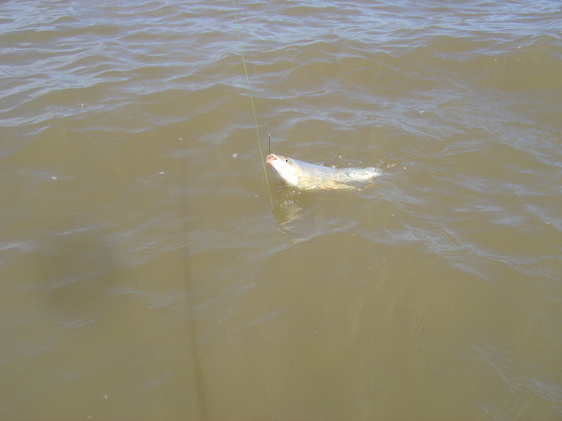 No estuve errado, estuvo en bajante toda la noche y subió un poco al mediodía, pero después bajo nuevamente y como llegué a las 11.30hs. ahí estaba yo para recibirlas, entre que prepare todo y entre al agua las encontré justo.jajaja.