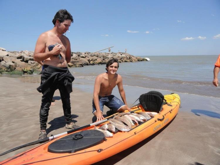 Quiero primero darle las gracias a emiAV.. por haber convocado para esos dias de buen tiempo y pique y justo para mis vacaciones en mdq. les cuento que dias anteriores bajaba el k1 por una bajada recomoda de lanchas en el balneario del cabo en mdq donde tmb alquilAban SOT pero el unico kayakfishing era el mio que a mi parecer despertaba mucha curiosidad de los demas remadores y como era de esperarse hize un amigo (German) con un K.FREE de capital que se copo con la onda PEK y masomenos lo equipo con una caña cuchillo y ancla y nos metimos 400mts, nos visito un lobo marino, hasta el crucero anamora cambio su curso por nosotros pero la zona no es de buena pesca solo saque una corvina 1500gms en 2 hs ese dia tambien lo invite a SantaClara y fuimos TMB con CharlyPiojoso del foro que estaba aca en mdq. Estando en SantaClara a las 8hs Salimos con Emi, Peje,Charly, y german. en el agua estaba Papariky cargadisimo de corvinas, el pique era increible y tambien como peliaban, en una la dejo en el posacaña de pvc para tirar otra llinea de flote y charly me avisa y se arranca el posacaña con tornillo y todo. Al salir enganche el ancla y corte el presinto y lo recupere. El domingo ya en mdq fuimos con otro user KADERA a sunrider de tarde, era su primera en el mar, y no hubo inconvenientes solo que no tomo la dosis de dramamine jeje ,era un dia de mucho oleaje, a mi esa pastilla me permitio a partir de la segunda salida no descomponerme para nada. Las fotos se las debo para la vuelta por que la ipoca nternet que tengo la cazo media al vuelo de otros edificios de mdq.Saludos y nos estamos viendo