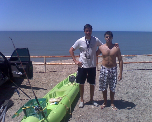 BUENO, COMO ERA SABADO Y EL DIA ESTABA BARBARO Y HABIA MUCHA GENTE EN VEZ DE IR A PICOTTO FUIMOS 15 KM MAS PARA EL LADO DE BAHIA CREEK, LAS GRUTAS, PRECISAMENTE A PLAYA BONITA. ASI QUE ARMAMOS TODO Y NOS METIMOS. AHH MI AMIGO NICO EXTRENO SU KAYAK PATAGONIAN BRAVO EN ESTA OPORTUNIDAD, MUY CONFORME DICHO SEA DE PASO. BUENO REMAMOS UNOS 300 METROS Y ANCLAMOS, LA MAREA ESTABA A MEDIO SUBIR. EL PIQUE EMPEZO TRANQUI SALIA ALGUNA PESCADILLA QUE OTRA Y GATUZOS GRANDES.