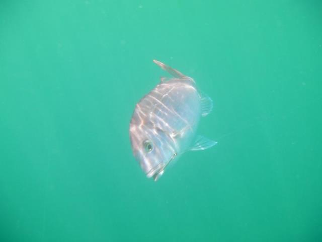 la fiesta se completo cuando aparecieron las caballas y como si esto fuera poco observa un gran pez limon corriendo a uno de ellas antes de lavantarla, la transparencia del agua es increible en ese lugar.