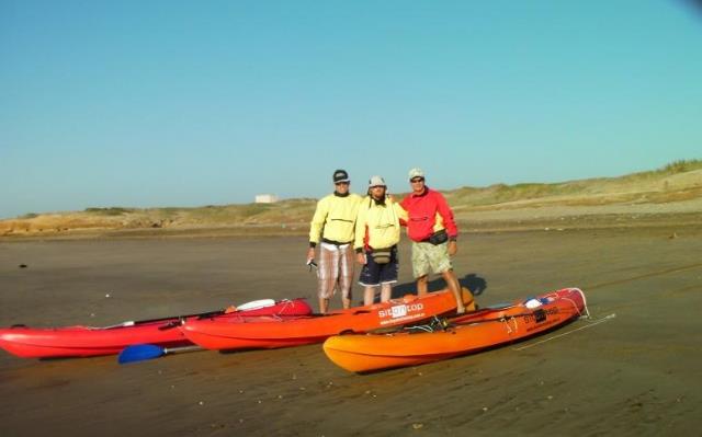 desembarcamos nuestros equipos con los nuevos kayaks sitontop "sunrider" que por sus caracteristicas los hacen muy veloces pudiendo efectuar distancias considerables en poco tiempo.