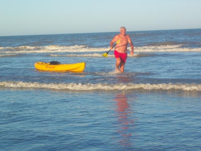 Curly en una de las fotos entrando al mar se parecía al David Hasselhof,