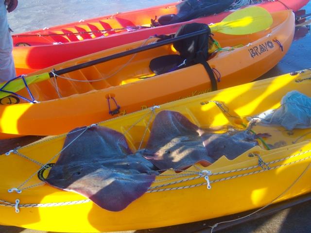 Hola curly queridooo!! me estoy volviendo de mar dce ajo y tb saque rayas nomas y alguna borriqueta,de haber sabido me iva para san ber q bolu q fui!!..,me metyi solo un par de veces y el ultimo dia con un amigo mio,muy ventosa me toco la semana pero me meti igual,no mas de 500 mts,me dijeron los de los botes pescadores q hay q meterse al menos 1000 mts pa pescar,cvuanto se metieron uds? abrazo!!