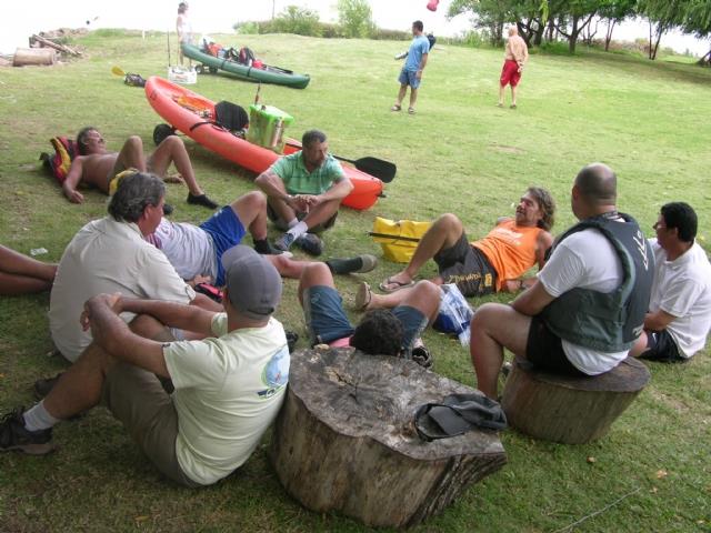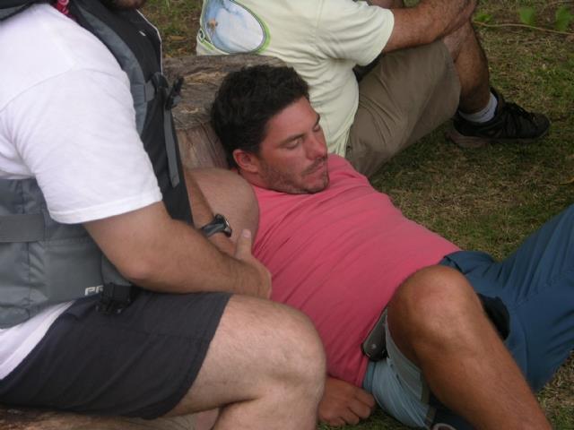 buenisimas las fotos pipo, en especial la de los instructores en transe, ¿los habremos hecho trabajar mucho?, eso demuetra el trabajo y la responsabilidad que pusieron a nuestro servicio para la seguridad del grupo, y bueno se lo merecen , era el momento justo para relajar tensiones, abajo de la sombra de un arbol con una fresca brisa y escuchando las recomendaciones del doctor socolinnsky ( alejo) , de donde me agarro alejo, jaja