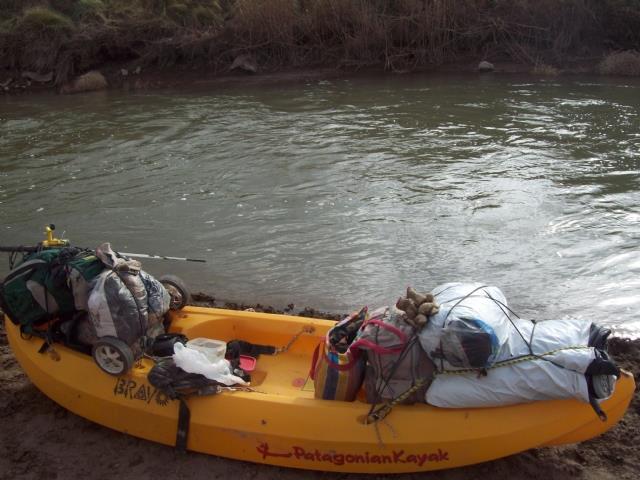 Perdi mi gorro y los lentesde sol nada mas, (esta ves llevaba todo en bolsitas...), aca hago un parentesis para aclararles que si alguien tiene un Bravo y piensa realizar una travesia no lo haga en aguas muy profundas  al menos con carga encima ,es muy dificil darlo vuelta con 48 kilos de cosas encima... en el primer intento no pude, 4 metros mas atras intentando salir de la correntada logre girarlo y arriba, y afuera, por suerte todo bien atado, nada mas que un susto ,poca profundidad, el resto de los rapidos y saltos los pase vadeandolos con el kay en mano y mojado hasta las patas.