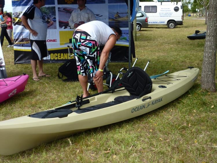 Lo mas loco de este informe es que YO SOY EL SUERTUDO DE LA BERMUDA EXTRAFALARIA !!!! estaba chusmeando en el stand de Claudio los carritos para kayak y proximamente el mismisimo Ocean Tetra 12 Angler, ese, el mismo de la foto sera mi nueva adquisición. Deja Vu ???