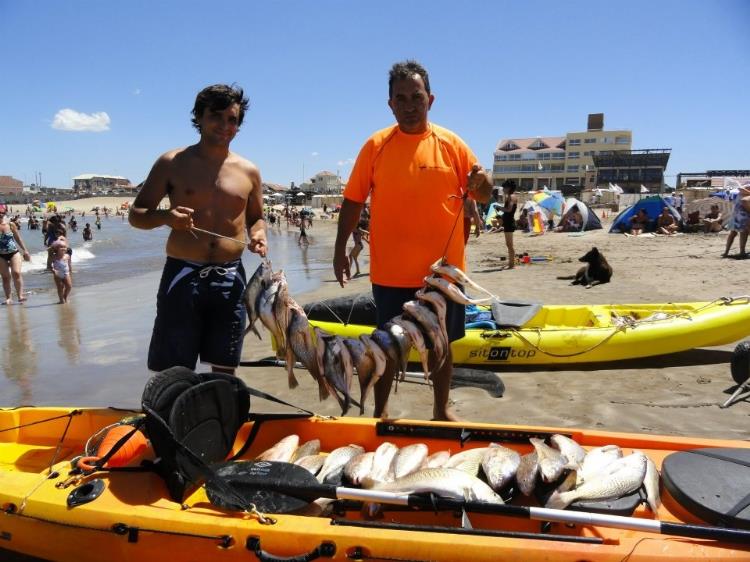 Quiero primero darle las gracias a emiAV.. por haber convocado para esos dias de buen tiempo y pique y justo para mis vacaciones en mdq. les cuento que dias anteriores bajaba el k1 por una bajada recomoda de lanchas en el balneario del cabo en mdq donde tmb alquilAban SOT pero el unico kayakfishing era el mio que a mi parecer despertaba mucha curiosidad de los demas remadores y como era de esperarse hize un amigo (German) con un K.FREE de capital que se copo con la onda PEK y masomenos lo equipo con una caña cuchillo y ancla y nos metimos 400mts, nos visito un lobo marino, hasta el crucero anamora cambio su curso por nosotros pero la zona no es de buena pesca solo saque una corvina 1500gms en 2 hs ese dia tambien lo invite a SantaClara y fuimos TMB con CharlyPiojoso del foro que estaba aca en mdq. Estando en SantaClara a las 8hs Salimos con Emi, Peje,Charly, y german. en el agua estaba Papariky cargadisimo de corvinas, el pique era increible y tambien como peliaban, en una la dejo en el posacaña de pvc para tirar otra llinea de flote y charly me avisa y se arranca el posacaña con tornillo y todo. Al salir enganche el ancla y corte el presinto y lo recupere. El domingo ya en mdq fuimos con otro user KADERA a sunrider de tarde, era su primera en el mar, y no hubo inconvenientes solo que no tomo la dosis de dramamine jeje ,era un dia de mucho oleaje, a mi esa pastilla me permitio a partir de la segunda salida no descomponerme para nada. Las fotos se las debo para la vuelta por que la ipoca nternet que tengo la cazo media al vuelo de otros edificios de mdq.Saludos y nos estamos viendo