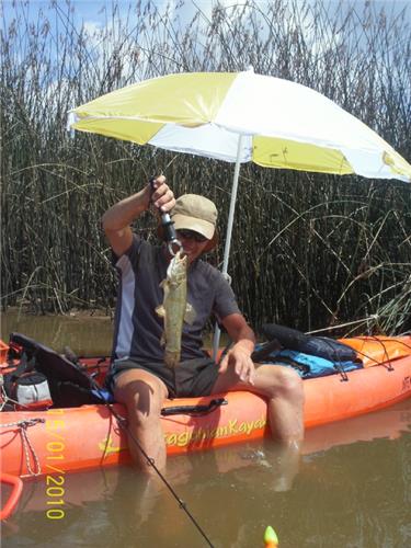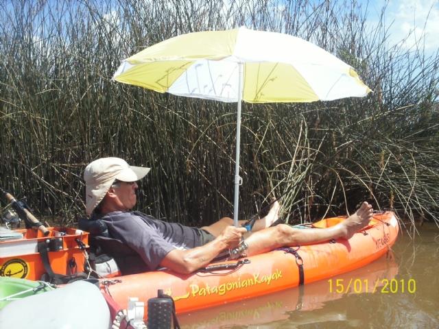 Por ultimo y aunque este subforo no sea Kayak Rigging, voy a presentarles el Brico "Sombri-kayak 2010 !!!) la manera en que Carlos, paso a pescar desde la jornada de hoy