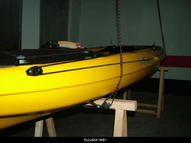El tema es asi: es verdad que el cabo se monta un poco arriba del kay, pero cuando trabaja tirando el ancla este cae sobre la banda y no jode mas en cubierta,lo agarre directamente a la manija del kay de proa, ademas lo particione en 2, uno que va de la proa hasta el medio del kayk y otra que va de popa al medio del kay, en la foto que publico mas abajo podes ver como es la mitad de proa, ahora le agregue tambien la mitad hacia popa, porque no me convencia un sistema de fondeo taaaaaannn largo, me parecia medio incomodo y hasta que se podia engalletar, por eso lo particione en dos como dije antes y cuando quiero fondear de proa uso la parte de adelante y cuando es de popa uso el tramo posterior, cuando gareteo con el ancla de capa lo fijo al medio del kay y lo atravieso al viento