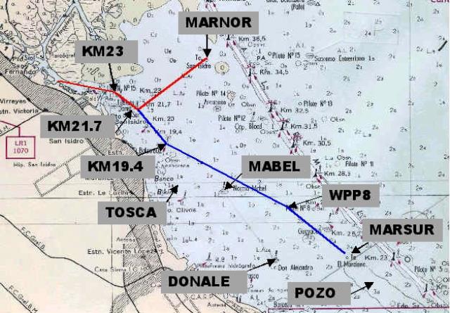 la foto posteada es una carta nautica con una ruta y algunos wp marcados.