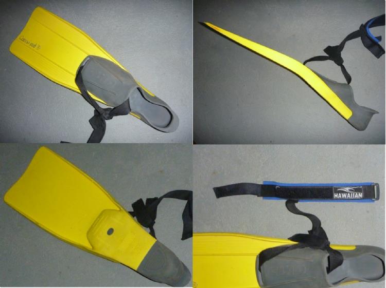 Hola, te comento que tengo unas aletas Cressi-sub modelo CLIO. Son largas, unos 10 cm mas que las que se ven comunmente en natacion. A mi me resultaron excelentes para meterme al mar a dejar la linea cuando pesco de costa (antes de tener el kayak), nadaba unos 250-300 m con el plomo en la mano, de espaldas, solo piernas. Como comentaron, al principio se te acalambra la pantorrilla, por eso dale suave y parejo. Yo les agregue el agarre que se ve en la foto, lo compre en un negocio de surf, son de neoprene y velcro. Te los recomiendo porque en la rompiente te metes en el lavarropas y he perdido unas y con esto se te salen pero no las perdes.
