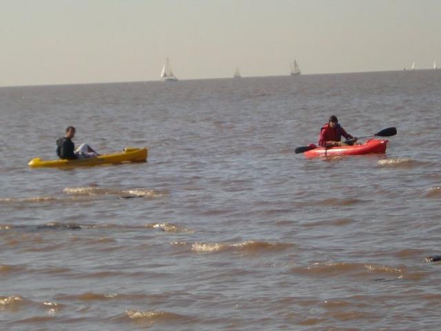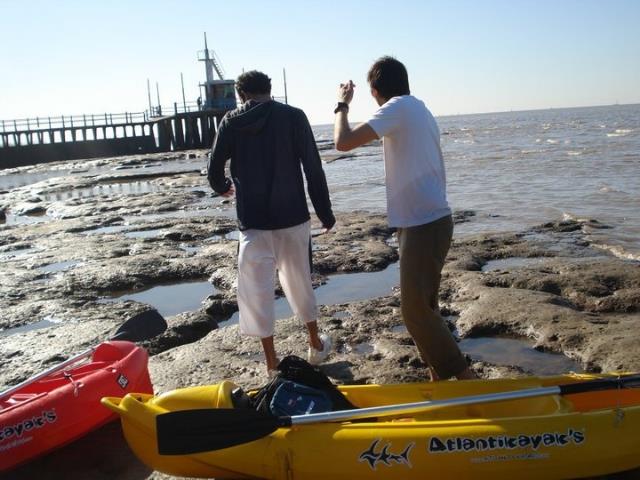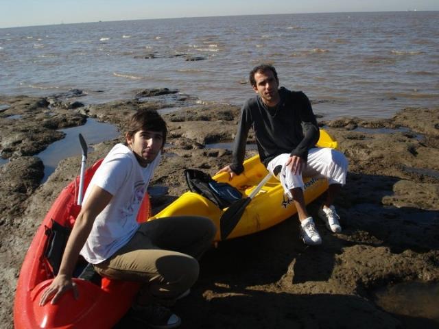 Hola a todos! queria mostrarle unas fotos del viernes, en el bautizmo de un nuevo "kayakfisherman" se trata de mi primo juan que a dias de enterarse de que yo ya tenia mi K1 se decidió y compró uno que tenia en vista. Les cuento que el rio estaba super bajo, el viento muy tranqui, lo que hacia en el agua unas olas chiquitas entretenidas para remar un rato (que fue lo que fuimos a hacer ya que todavia no estamos muy preparados a nivel equipo como para salir a pescar) mientras vamos reuniendo todos los elementos necesarios para el sistema de fondeo y demás cuestiones. Salimos alrededor de las 10.30 desde San Miguel, previo atado de los K1 arriba del gol y mas o menos a las 11.45 estabamos con los kay en el agua. Nos mojamos a mas no poder para entrar, ya que al estar tan bajo quedabamos trabados entre las piedras lo que le costó algunos rayoncitos a la base de los kayaKS que no me gustó nada! Por suerte para vla vuelta nos esperaban las chicas con unos ricos mates y facturas. Bueno les dejo las fotos del pequeño relato!!