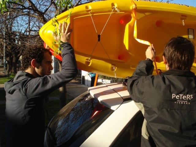 Una observacion: El que me vendio el kayak cuando me ayudo a subirlo al auto me dijo que lo llevara siempre boca abajo sobre el techo, de esa forma tiene mas agarre, ojo el mio es un k2, por ahi con los k1 no tenes mas remedio que llevarlos boca arriba, pero fijate porque de esa forma vas a ir mas seguro.