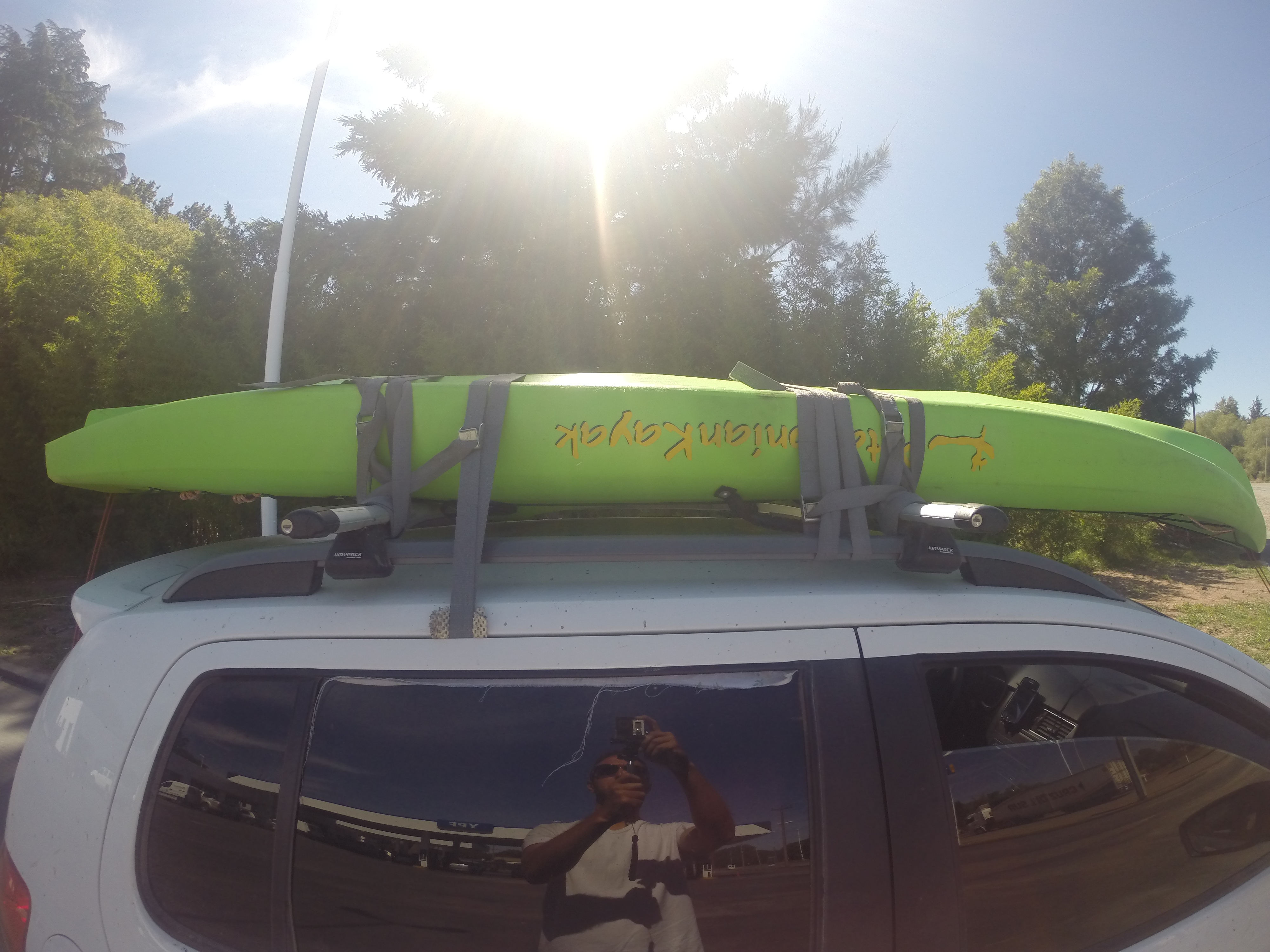 El viaje con el kay fue impecable, fue montado sobre barras de buena calidad, con cintas auto ajustables y atado de proa y popa, pude mantener una velocidad aprox de 130 km/h.