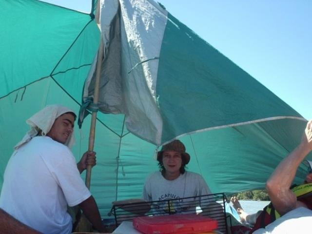 BUENO LES DEJO ALGUNAS FOTOS, DE PASO LES MUESTRO COMO EMPIEZA A HACERME RUIDO EN LA CABEZA EL TEMA DE LA VELA EN EL KAYAK. ESE DIA HICIMOS COMO 10 KM CON LA VELOCIDAD QUE NOS PROPICIABA EL VIENTO EN LA LONA DE MI IGLU. MIENTRAS IBAMOS VIAJANDO CON LAS TRES CANOAS UNIDAS EN UNA LLEBAVAMOS UN CALENTADOR ASI QUE IBAMSO MATEANDO. INPAGABLE.