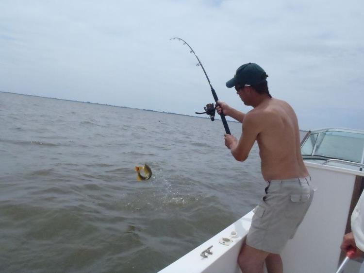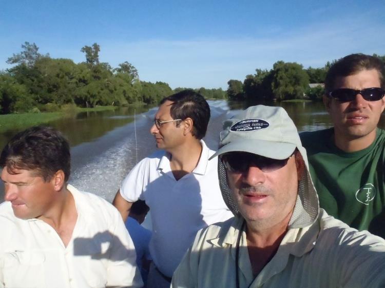 DIA 2 , sabado 21 de enero de 2012 : nos encontramos con el guia Angel ( altamente recomendable ) en la guarderia Los Pinos a las 7:30 y partimos hacia el rio Uruguay recorriendo el Paranacito , el Sagastume el Martinez y paramos un rato en la boca del Mosquito para proveernos de bagres , cerca nuestro habia una lancha que estaba sacando bogas aunque no de gran porte , continuo ilustrando :