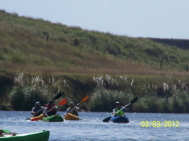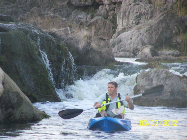Muchachos. quería compartir con ustedes estas imagenes de una travesía de 12 kms. que hicimos con un grupo de amigos kayakistas en el Rio Quequen salado. Para que se puedan ubicar, aunque algunos de ustedes ya lo conocen, cruza la ruta Nac3 en el km. 531, es el limite que divide el partido de Cnel. Dorrego y Tres Arroyos. A partir de la ruta 3 su cauce se hace más caudaloso. Desde la ruta luego de recorrer aprox. 40 kms. desemboca en nuestras hermosas playas del balneario Marisol. Esta travesía fue de 12 kms. aprox desde un punto llamado "Usina Vieja" hasta la cascada donde se encuentra el paraje llamado "Cueva del Tigre"
