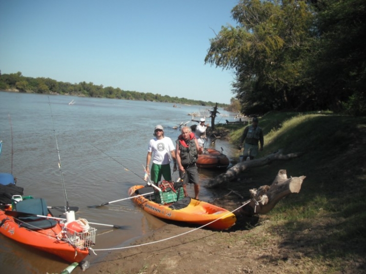 Por fin se dio la tan esperada flotada por el Rio Dulce, desde Sumamao hasta la Pirucha (Loreto) EN total fueron 26km. El paisaje indescriptible, hermoso como solo el Dulce nos puede brindar. La pesca casi nula. Dorados cero, solo algunas bogas q probamos durante algunos minutos y un sabalo pescado a patadones. Ibamos paleando cuando de repente yo iba atras, en el triplo y veo que pica 2 veces en el agua un sabalo y da un tercer y alto salto y pasa por arriba del Kay, en ese momento le meti un patadon q de suerte logre atraparlo entre el asiento de adelante y el cajon, logre meterlo entre esos 2 y desp poner las 2 piernas, una en cada costado del espacio cajon-asiento- Al rato de remar y acercarnos a la costa, logramos sacar el sabado de ese escondrijo y guardarlo. La verdad q fue muy gracioso ese momento, ya q mi compañero de aventuras se pego un cagado al ver q un pez se le iba a la cara. jajajajja. EL julepe q se pego fue muy gracioso. En esta salida participaron mis infaltables Buenos Vecinos ( Walter Gallo, Gustavo Bianciotti, Martin Dalle Murra y quien les relata, Fernando Soria) Ademas de sumarse Diego Quinteros y Matias Arroyo en el gomon. Navegar ese rio es espectacular, la fauna cambia abruptamente a la altura de la compuerta(mitad de camino).....Para la proxima salida nos queda por palear de la Pirucha hasta el Puente de la Dormida. No los canso mas y pongo algunas fotos. Saludos. Cualquier cosa pregunten. Saludos Fernando SOria