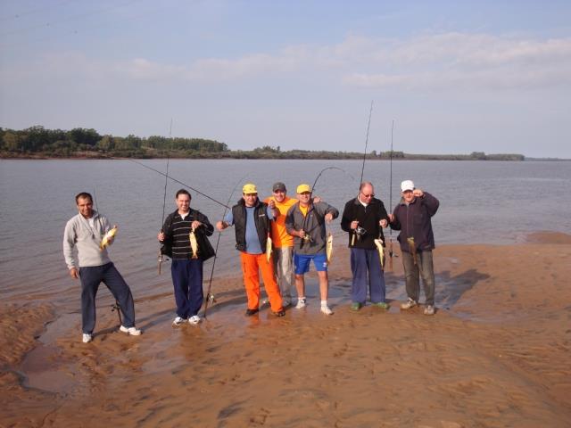 Bueno, Amigos, ...que decirles? era mi regreso al agua después de 4 meses exactos de inactividad, producto de aquella infección que me había tomado el tobillo derecho y me había tenido inmovilizado mucho mas de lo deseable, pero como no podía ser de otra manera, el participar nuevamente con todos Uds en esta salida maravillosa que hemos tenido, me devolvió la amplia satisfacción de aumentar el listado de amigos, conociendo a quienes se sumaron al grupo últimamente y participaron por primera vez de una salida Asimismo también estarles muy agradecido por todo lo que nos brindaron a Gush, Juampy, Dario, Elgari, Francisco…todos gente de primera !! Las vivencias que esta salida, particularmente me depararía, comenzaron ya desde unos días antes con todos los preparativos inherentes a la misma, que no falte nada, que las cañas, que los reels, que las líneas, que la carnada,…ahhh que tema el de la carnada, ya que no se conseguía morena por ningún lado, hasta que DiegoC recomienda a alguien que vende morenas artificiales, …listoooo,…llamado de por medio y las morenas aparecieron en casa de la mano de Walter, otro fuera de serie, que se recorre la Capital de punta a punta, llevándote la carnada hasta la puerta de tu casa, sin cobrarte un solo peso adicional….para tenerlo en cuenta. Así las cosas, llega el dia “D”, viernes a la mañana, a juntarse a desayunar en Zarate y de ahí proseguir camino rumbo a Concordia, en caravana…Todo salio a pedir de boca, un buen viaje, y finalmente arribamos a la Tortuga Alegre,…nos esperaban y fue emocionante por fin a quienes nos habían dado una mano importante en la organización del evento, pero al mismo tiempo fue enterarnos que había actividad de dorados muy cerca de la costa, para que las manos no se nos vieran con tal armar rápido los equipos y comenzar a intentar la captura de los mismos, quienes respondían con creces a nuestras expectativas contenidas… y así fueron saliendo, uno tras otros, una cantidad enorme de doradillos de todo tamaño, desde los mas chicos, hasta algunos que estaban ahí nomás de dar la medida,…aunque este detalle era innecesario, porque nunca estuvo presente otra intención que no sea devolver todos inmediatamente a su hábitat…Pescando asi, de costa, fue transcurriendo la primer jornada, solo interrumpida para almorzar unos sándwiches de milanesa y para cenar en una parrilla cercana al pueblo, como ya narrara OscarF. Para la segunda jornada, disputaba también nuestra atención, el poder mirar el partido de la Selección, por ende hubo toda una faz organizativa, que incluso llego a tener un plan “A” y un plan “B” para que ningún imprevisto nos prive de ver el encuentro. Por suerte todo salio bien, y sin dificultad alguna, hemos podido presenciar el partido, en dependencias de la Peña que funciona dentro mismo de las instalaciones del camping. Finalizado este, se retorno de inmediato a la actividad pesqueril y fue allí donde me calcé el traje de neoprene y junto a otros convertimos en un nuevo disfrute, el pescar a los doradillos desde el medio del río, gareteando y volviendo a remo para desandar el tramo del garete. Los resultados fueron mas que sorprendentes, se pescaba con mosca, con señuelo, de flote con carnada blanca, de fondo con carnada artificial, …en fin se puede resumir en que no había impedimento para sacar doraditos, sea cual fuere la técnica y/o la carnada empleada…tocábamos el cielo con las manos, …incluso se llego a mencionar que con la pesca obtenida el primer día ya estaba pago el viaje y que todo lo que se obtuviera el segundo y tercer día venia de arriba, de regalo… Por la noche del sábado, se realizo un impresionante asado precedido por una picada de los celebres salamines que aporta Pipo desde Rojas, y donde se lucio una vez mas Jmbohe al mando de la parrilla, y finalmente Gush nos sorprendió a todos con las sorpresas que nos tenia preparadas, que consistieron en un diploma que certificaba la presencia en el evento y dos CDs con interesantísimos temas relacionados con la actividad. Sumando emoción tras emoción, se llego al día domingo, donde se desplegó nuevamente la actividad en el agua, para despedirnos gratamente complacidos de este Encuentro con una inmejorable pesca nuevamente, oportunidad en que puse en prueba practicar la modalidad “currican” la cual, al igual que todas las demás ensayadas, rindió sus frutos, el tema es que la comenzábamos a practicar, junto a Fernando Greco, en el preciso momento en que iniciábamos la remontada del río luego de un garete, pero como el pique era inmediato tuvimos que suspenderla porque sino seguíamos derivando y hubiésemos terminado en Salto Chico, que esta a 10 Kms de distancia. Como todo lo bueno tiene un fin, finalmente a las 14,30 hs del dia domingo nos despedimos entre todos e iniciamos nuestros regresos a casa, ya pensando en donde realizaremos el proximo Encuentro. Van algunas fotos de las mas de 100 que he obtenido: