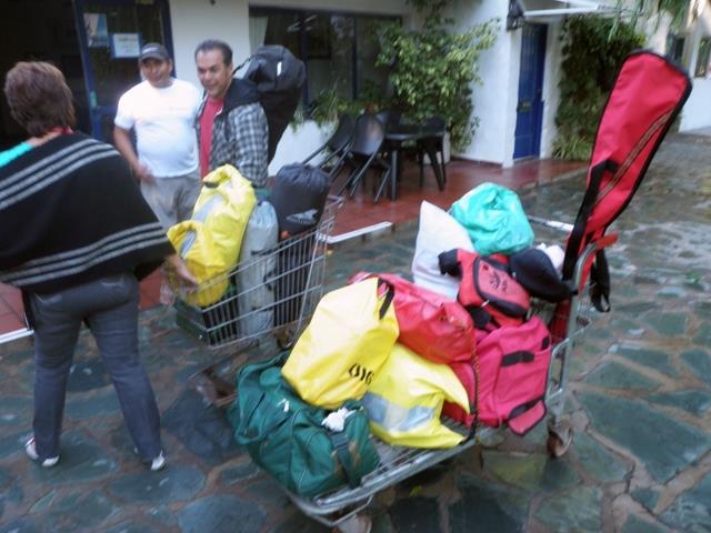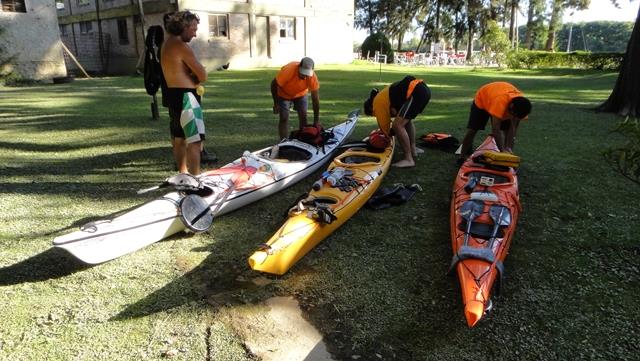 Nos juntamos con los muchachos el sabado temprano y despues del ultimo chaparron de las 8 30 am que dejo el cielo bien despejado aprontamos los kayaks para la partida.