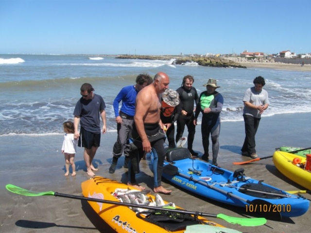 un dia de muchas sensaciones nuevas . mi primer entrada al mar . una buena pesca , unos buenos mareos jaja ( que feo vomitar sentado )y una salida barrenando de costado , ( la teoria de clavar la pala en la ola fue muy util , me evito una caida y lo peor la perdida de las 15 pescadillas que logre. muy buena gente , con ganas de disfrutar un lindo dia .